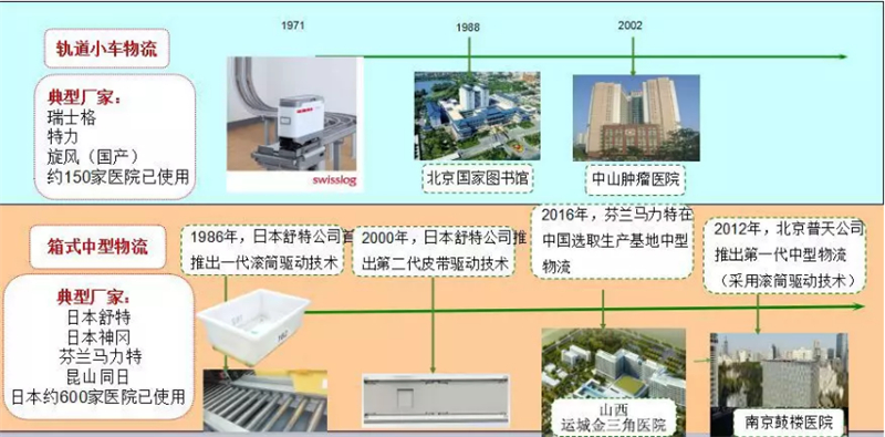 国际上,发达国家和地区的医院由于人力成本高,引入智能物流系统的时间较早,且应用领域广泛、种类齐全。截至20世纪末,欧洲有超过1万套物流传输系统在医院使用,日本有3000家以上的医院装有智能物流传输系统。